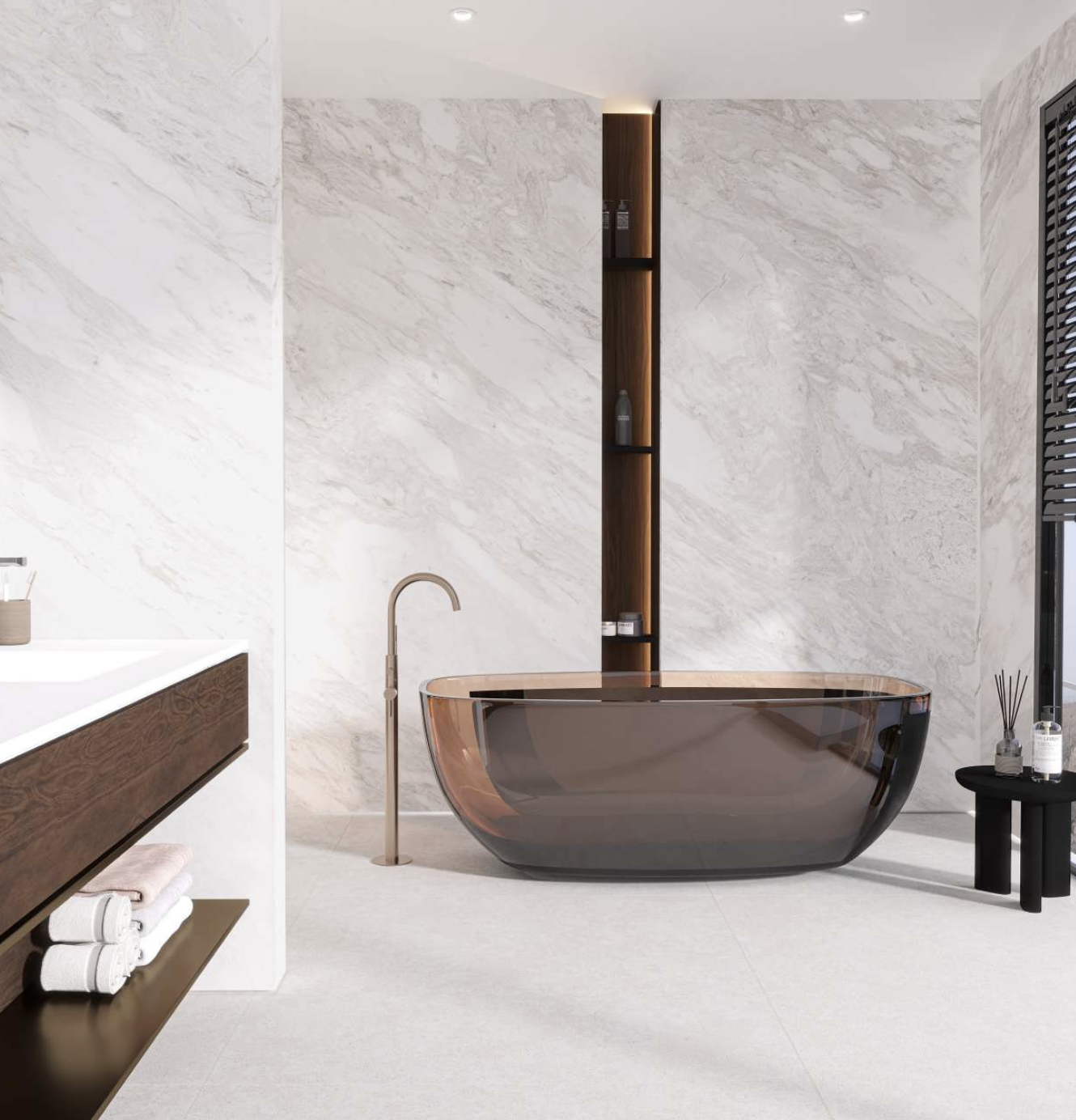 Le carrelage Flora 60×120 cm séduit par son élégance discrète. Sur une base blanche, des veines colorées très légères apportent une touche raffinée et subtile. Ces nuances délicates ne dominent pas la surface, mais donnent un charme unique et lumineux à chaque pièce.